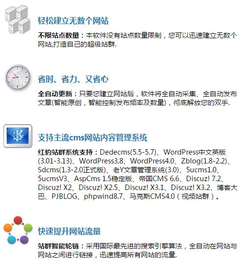红豹站群,著名的站群营销实战派软件,站群营销软件的鼻祖。
